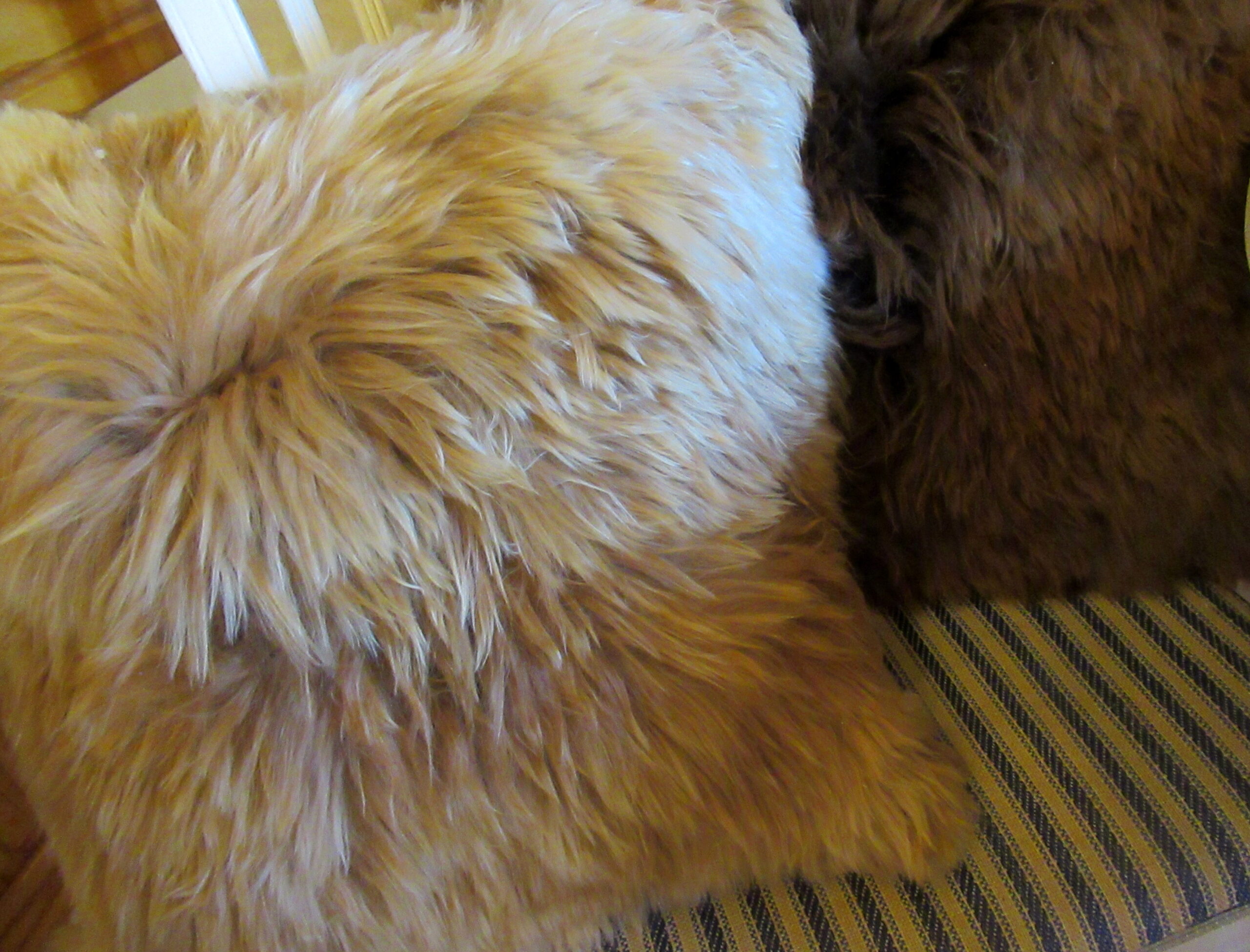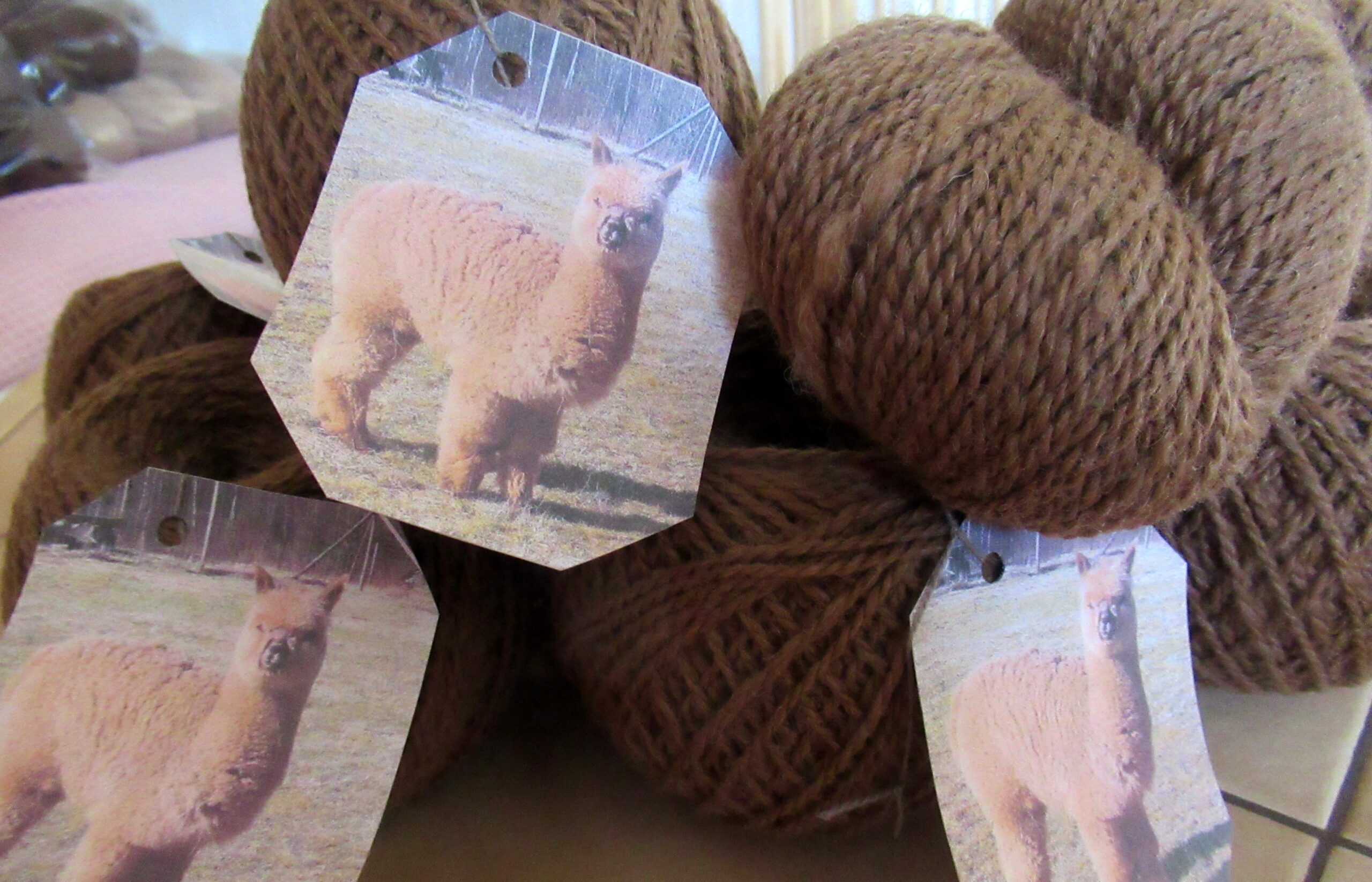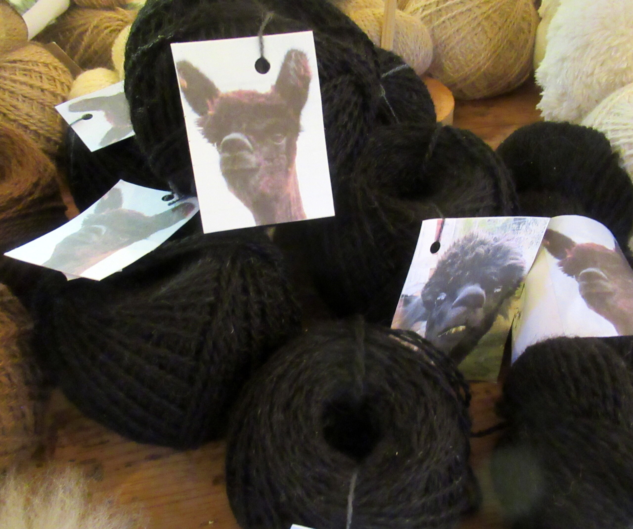 Vi säljer även garn från våra Surialpackor Nayeli, Kiran och Inti. De har en helt annan pälsstruktur med långa rastalockar och deras garn lyser lite mer och är glansigare.